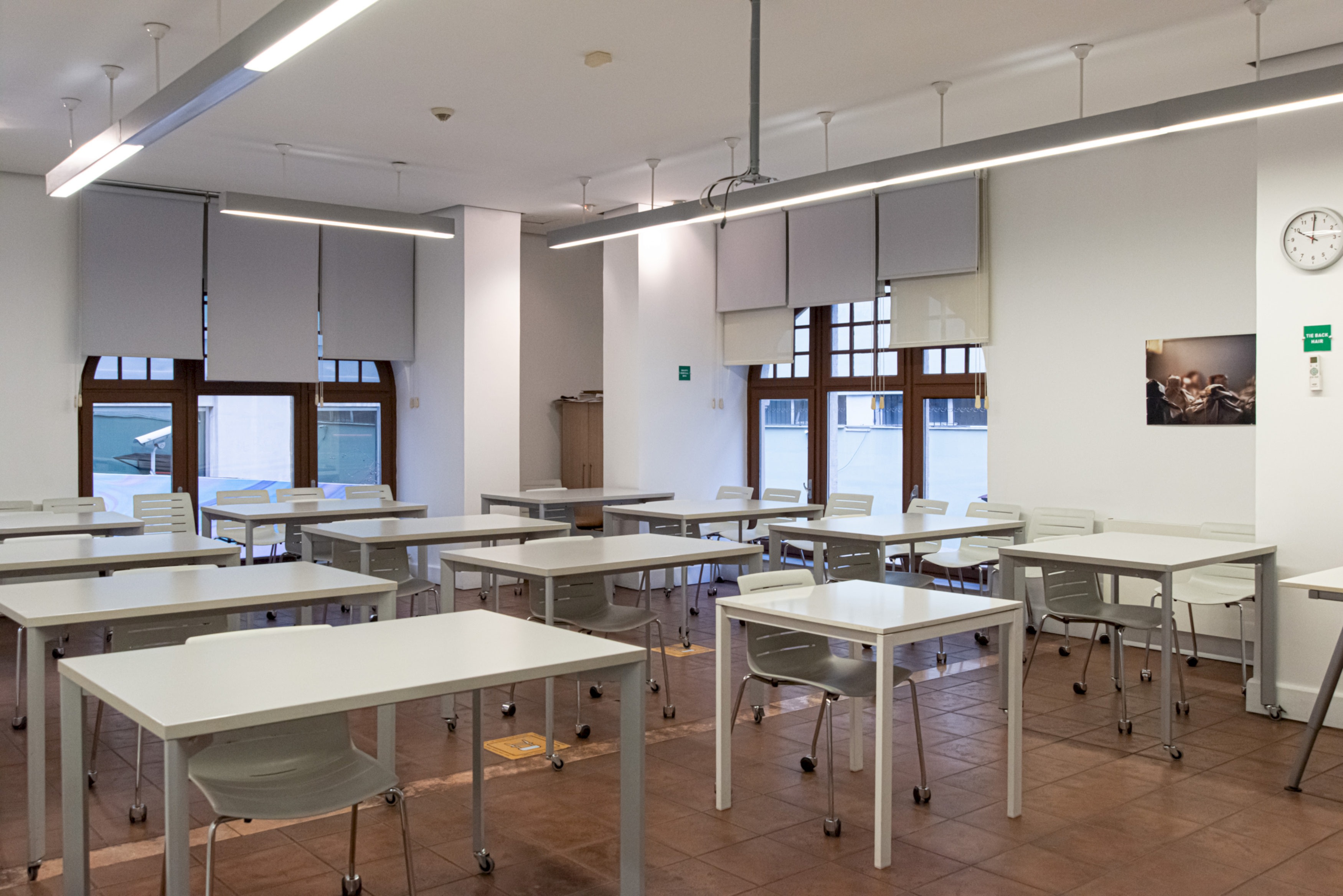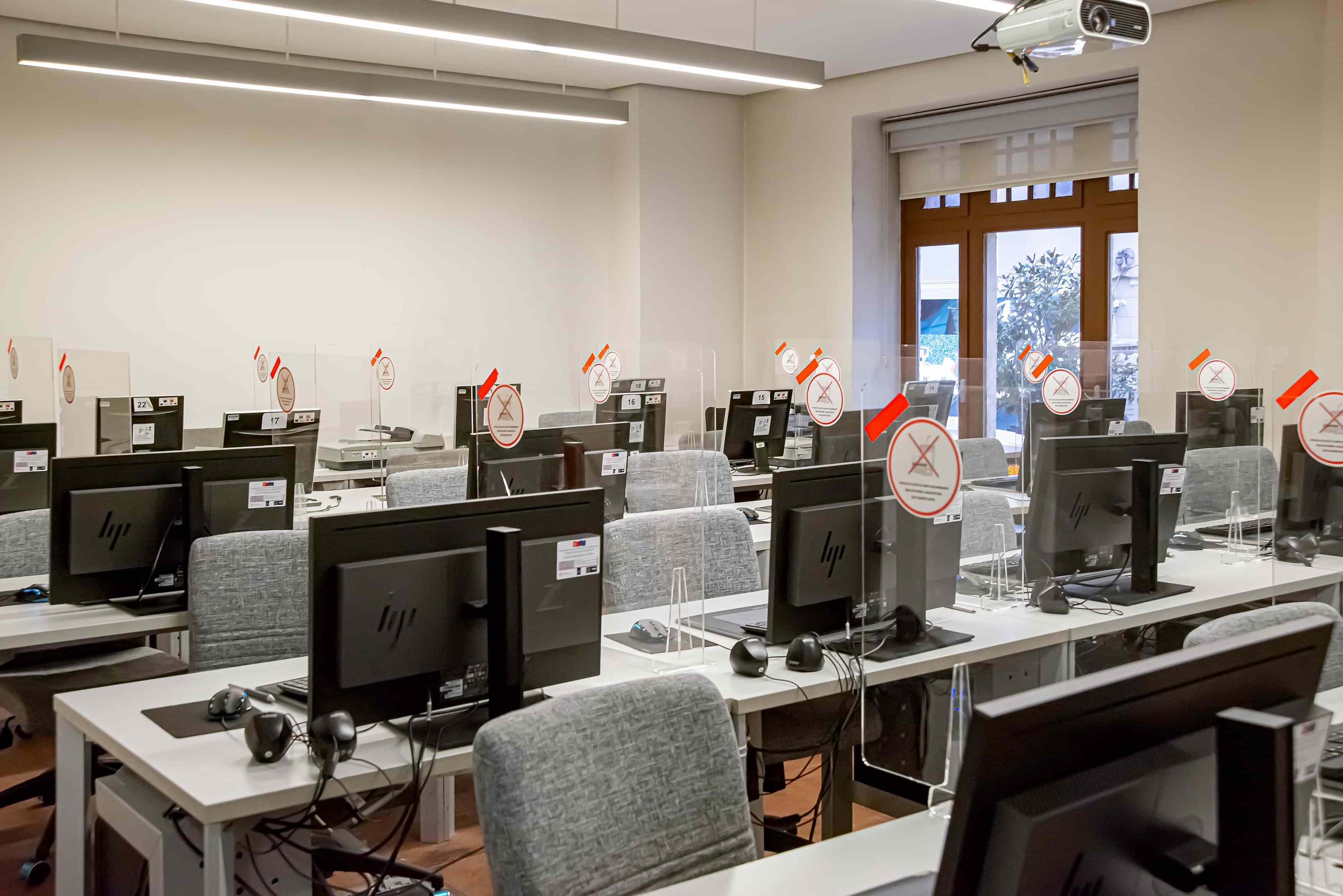 Sınıflar 50 kişi oturma kapasiteli ve projeksiyon, projeksiyon perdesi, beyaz tahta, bilgisayar ve TV'nin Pinco teknik donanıma sahiptir.